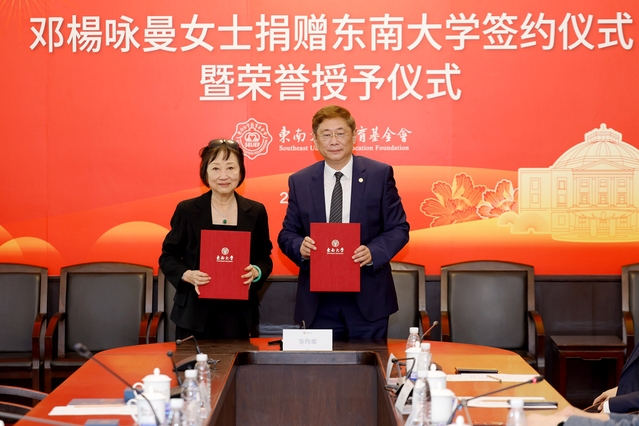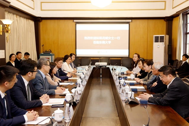 5月15日,邓楊咏曼女士捐赠东南大学签约仪式暨荣誉授予仪式在东南大学四牌楼校区举行,香港特别行政区原行政长官林郑月娥、香港特别行政区太平绅士邓楊咏曼、数学学院教授林兆波、东南大学校长黄如、副校长黄大卫、副校长邱海波、数学学院党委书记吴映红、教育基金会秘书长芮振华、港澳台办副主任王晨、校团委副书记张琰参加了仪式。